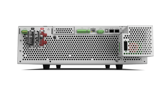 - Fully integrated battery cycler: built-in isolation contactor relays, pre-charge circuit, reverse polarity checker
